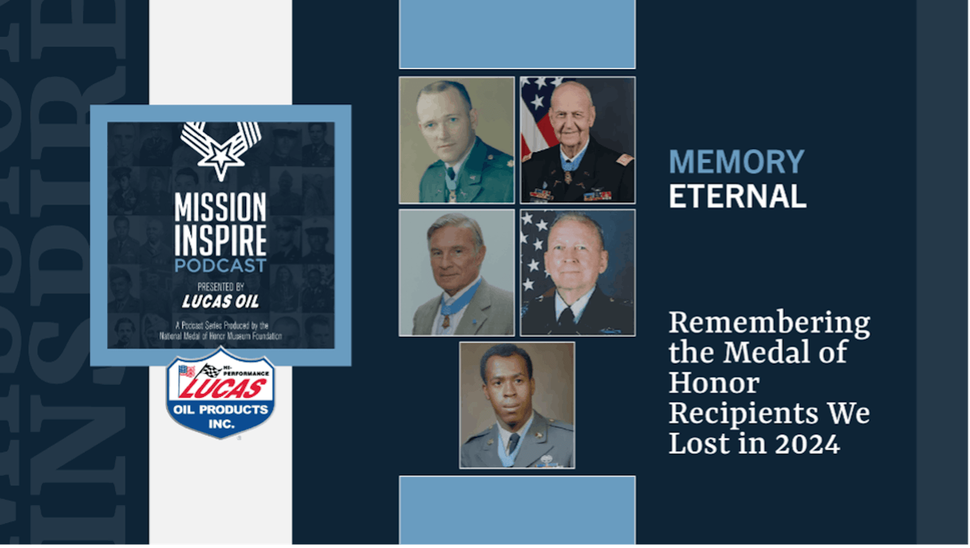 Through their sponsorship of Mission Inspire, Lucas Oil proudly joins the Museum in celebrating the courage and resilience of Medal of Honor Recipients, reflecting the values driving their brand, the podcast, and the mission to inspire America.
