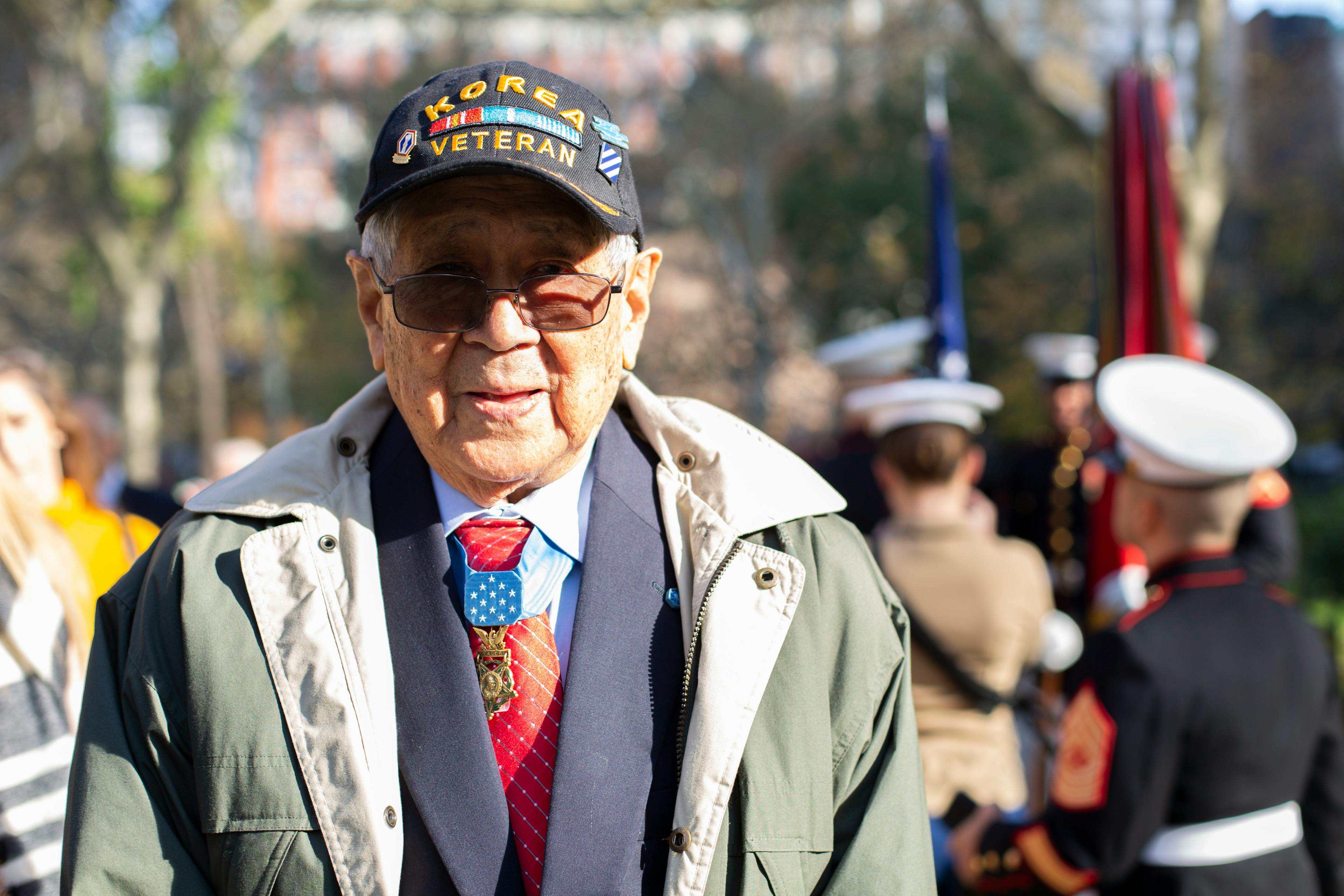 Medal of Honor recipient Army Staff Sgt. Hiroshi “Hershey” Miyamura is pictured at the 2019 New York City Veterans Day Parade, Nov. 11. Miyamura served as a grand marshal of the parade, which marked its centennial anniversary and honored the Marine Corps as its featured service. Formed Nov. 10, 1775, as naval augment forces capable of fighting both at sea and on shore, the Marine Corps has secured freedom in every major conflict America has faced. Together, the Navy-Marine Corps Team enables the joint force to partner together and operate on behalf of national defense in this era of great power competition. Steeped in the core values of honor, courage and commitment, Marines bring moral, physical, and intellectual strength to every situation. When their time in uniform is done, Marines use those qualities to continue to serve their communities. (U.S. Marine Corps photo by Cpl. Mario Ramirez)